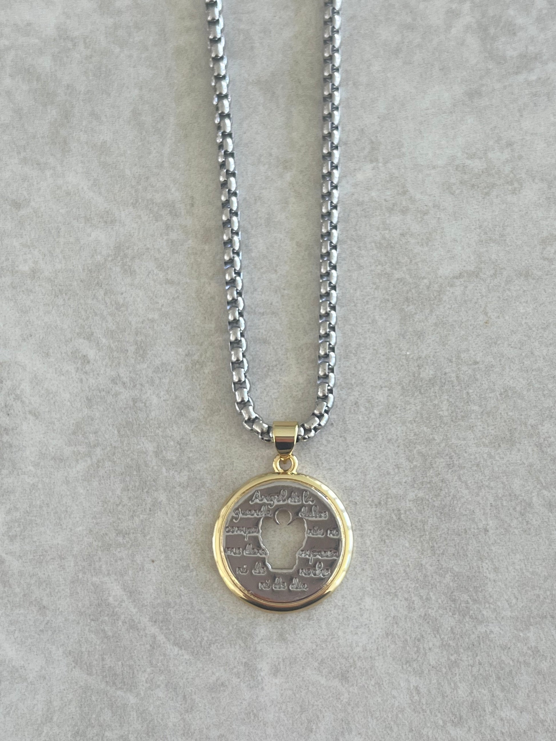 Cadena en acero inoxidable en charm en forma de angel de la guardia.