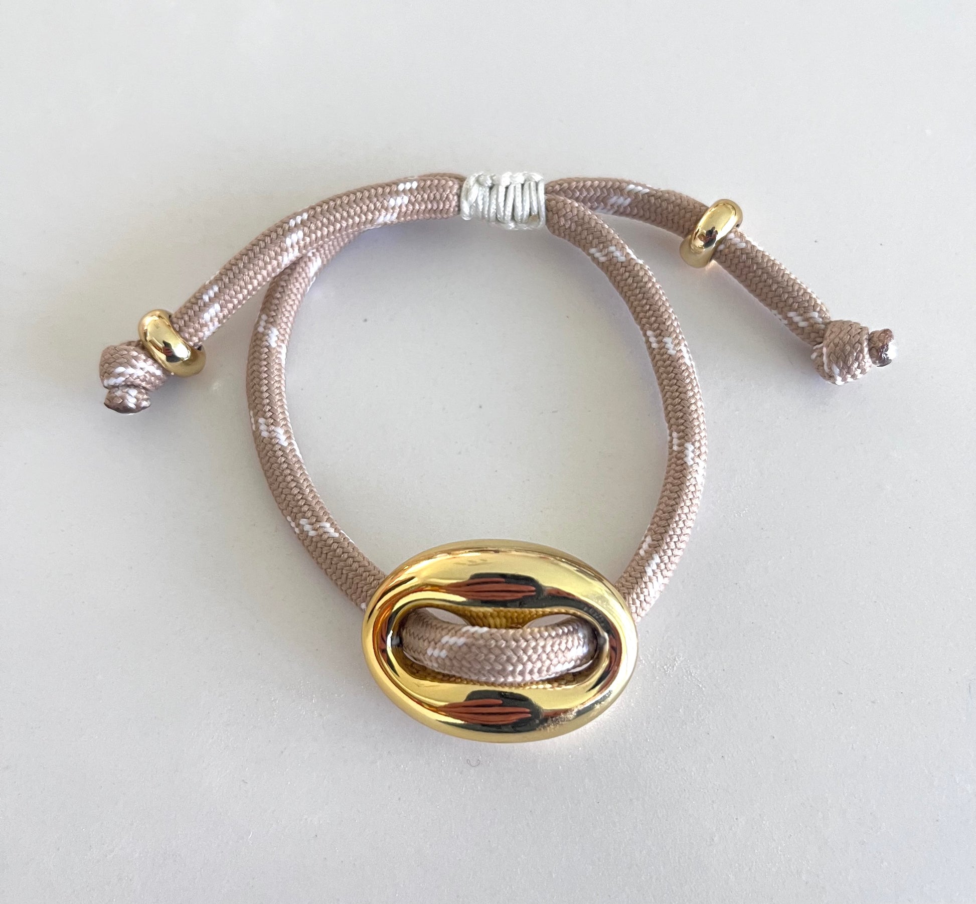 Pulsera ajustable con cierre macrame. El charm es en baño de oro de 18K.