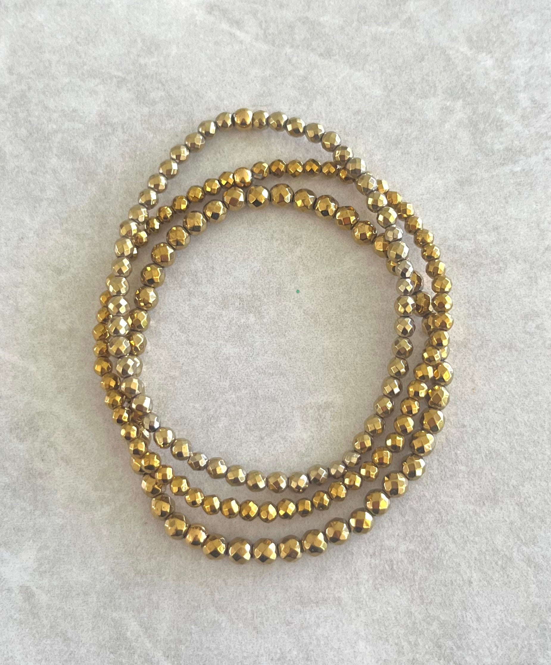 Set de tres pulseras elásticas en hematita.